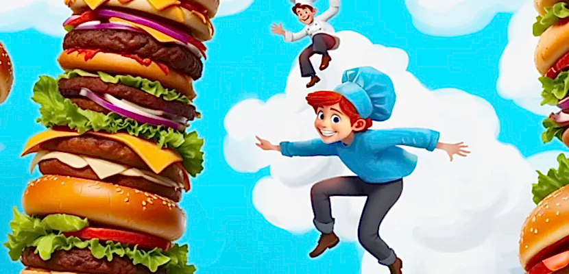 Докажите, что именно ваша команда сможет приготовить самый большой и вкусный бургер на арене! Но будьте внимательны: свежие ингредиенты приносят очки, а просроченные их отнимают. Задача команды - выбрать нужный и по рецепту собрать гигантскую бургер-башню.